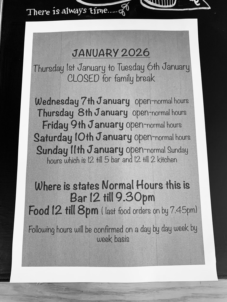 As we are in our finale stages of pub sale we will be taking the opening times week by week. Follow our facebook page to keep track of our progress or keep checking on this website by heading to the pub update button. Wishing you all a very happy new year.